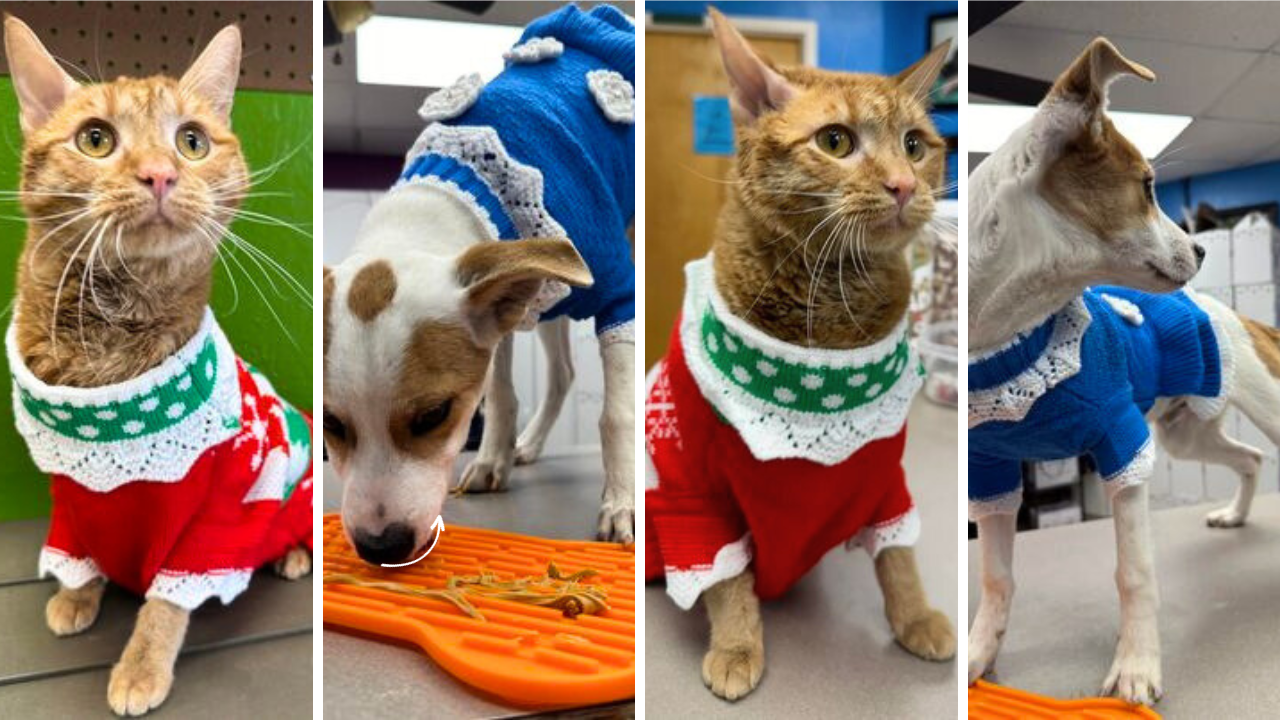"Wow, this is fantastic. Thank you so much! We received the shipment and love it. We will likely share some of the sweaters and other donations with some other local shelters. :) Our volunteer coordinator’s dog, Jack, is modeling one of the sweaters. Thanks again & Happy Holidays!"——Peace of Mind Dog Rescue