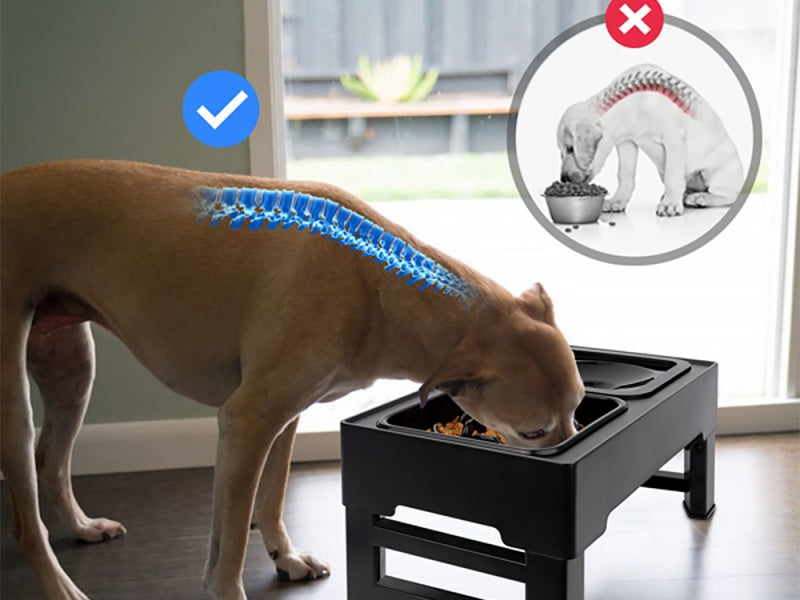 SLOW FEEDER BOWL & NO-SPILL WATER BOWL: The bowl stand comes with a slow feeder bowl and a no spill water bowl, slow feeder helps develop good eating habits in dogs.