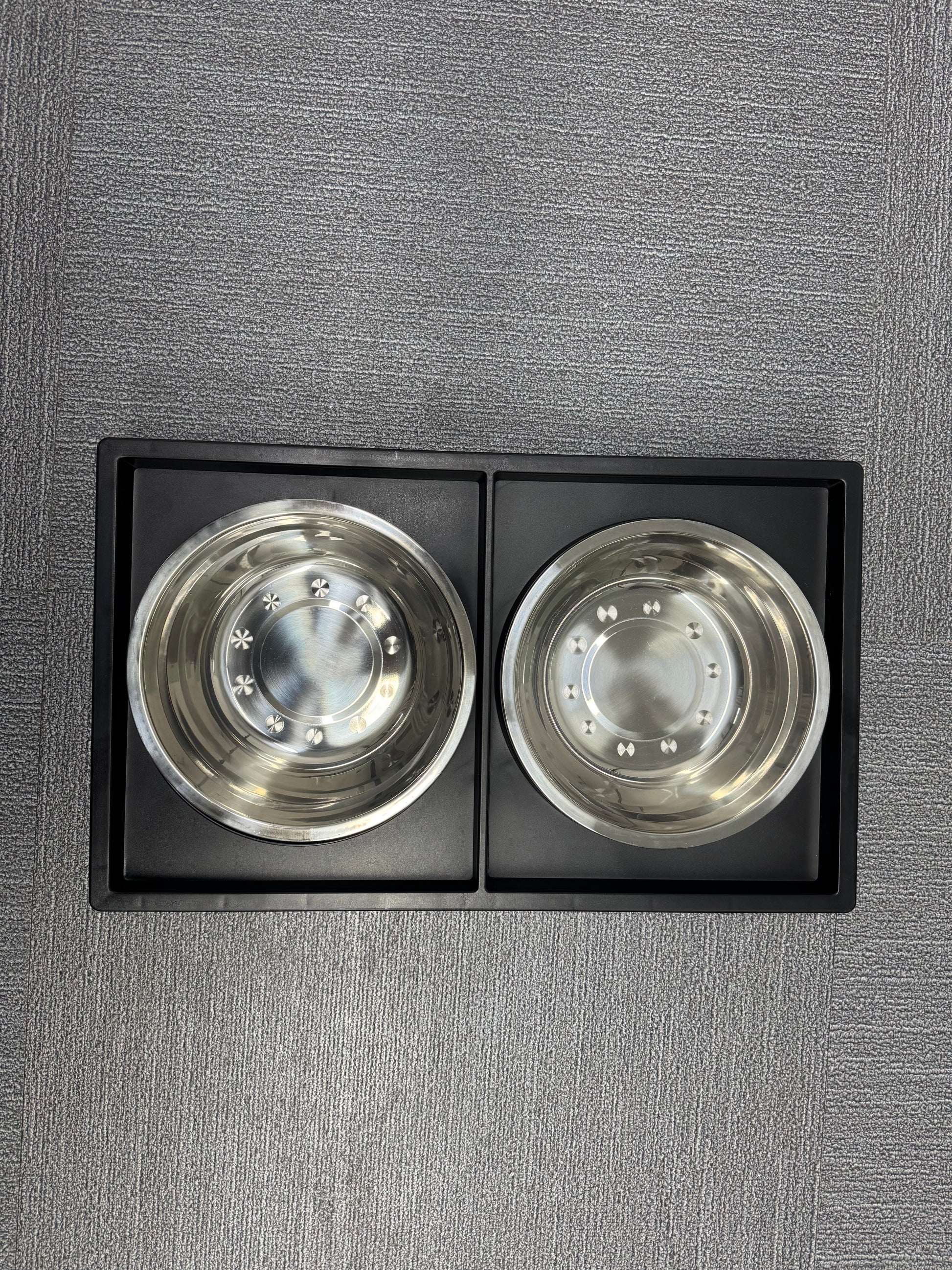 - Anti-Slip & Non-spill: No worry about the dirt and mess. The dog food bowl stand offer non-slip pads, raised edges prevent the bowl sliding and leaking food or water leak.Has non-skid rubber feet to prevent sliding and additional splashing, so your floors and walls stay clean and dry